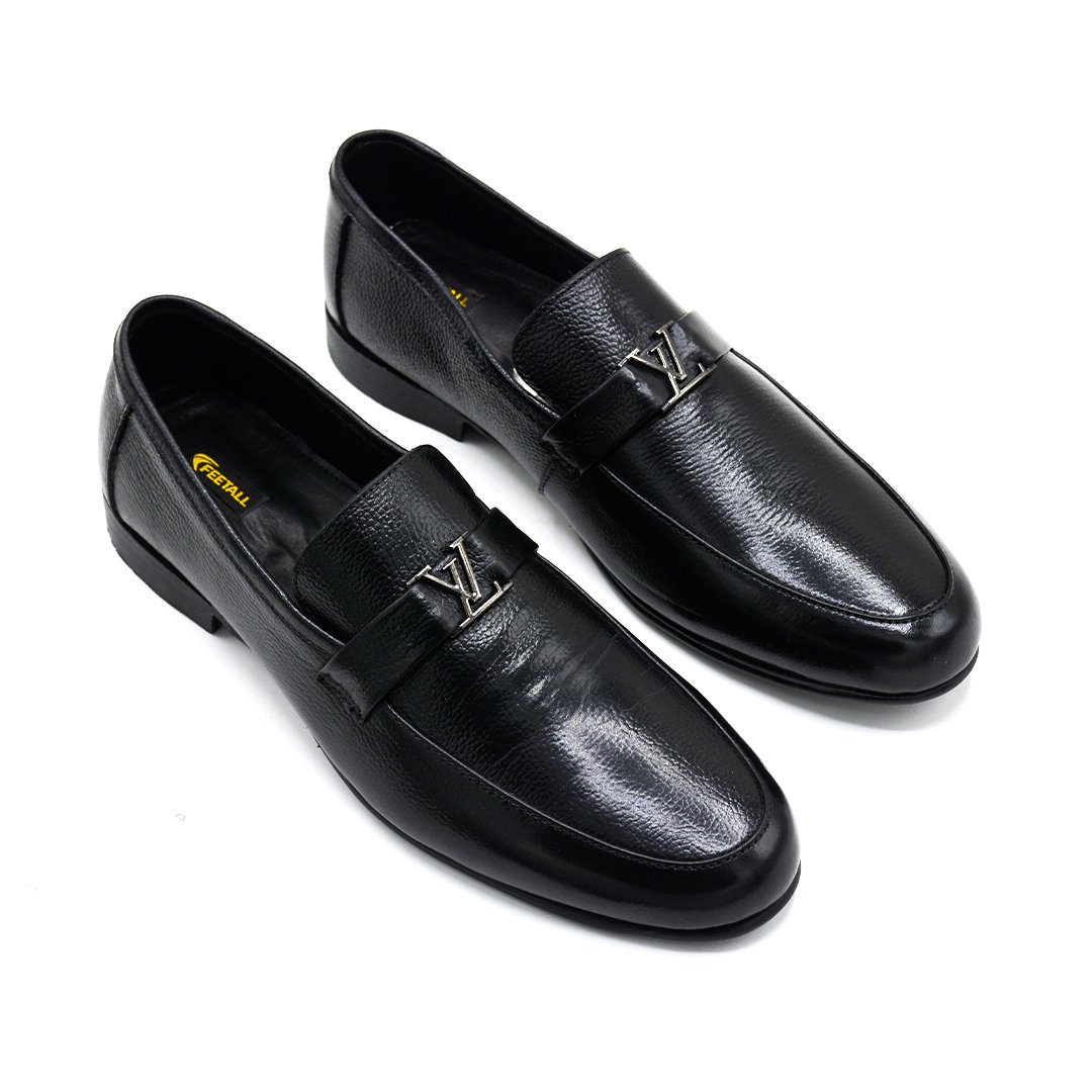 Step into timeless elegance with these premium black loafers crafted from genuine leather upper and durable rubber sole. Designed for comfort and style, they feature a sleek finish with metallic detailing, making them perfect for both formal and semi-formal occasions.